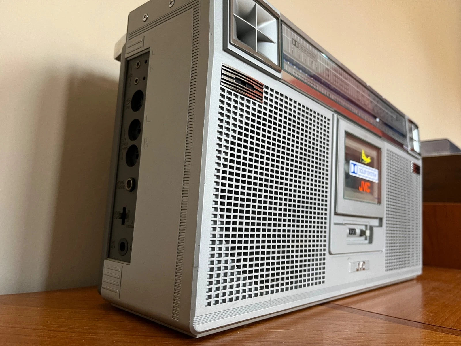 JVC Vintage Radio Cassette Recorder with 4 Band Radio in excellent original condition. Fully working and tested. One for the collector or enthusiast looking for a clean, serviced example. The Biphonic 'wide' mode still functions effectively.