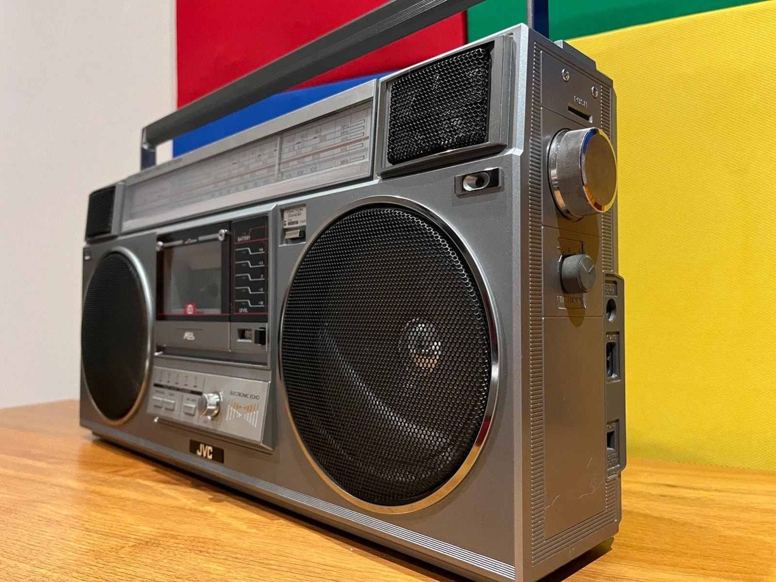 Absolutely stunning JVC Vintage Radio Cassette Recorder with 5 Band Radio. A very clean and great sounding example of this super-rare model, which has just been serviced for sale. The frequency response is excellent with the original JVC 'blue cone' woofers plus genuine tweeters with a full sound and clear trebles. Over 40 years old, but looks, performs and sounds fabulous!