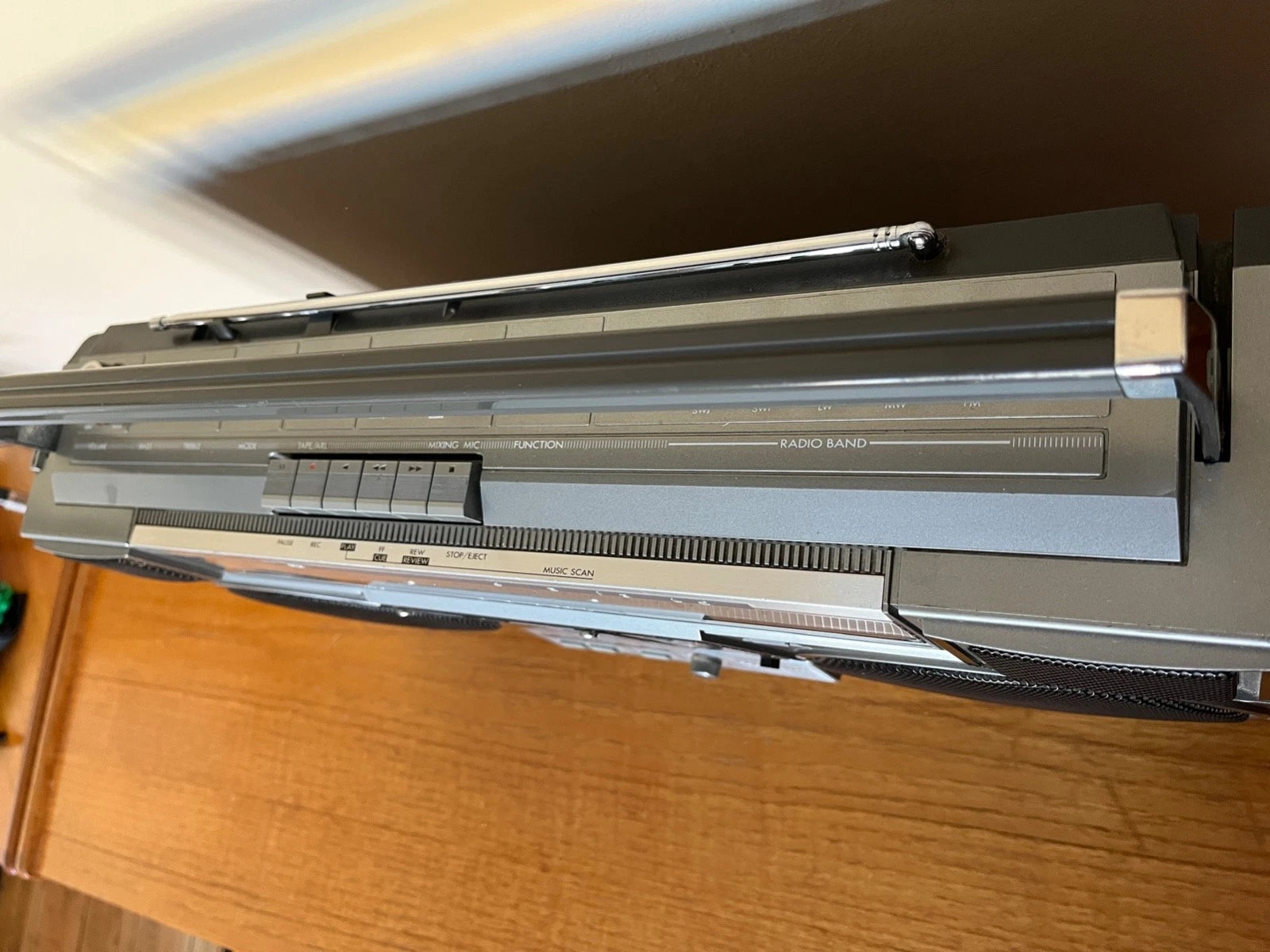 I picked up lots of clear stations on the FM radio, with a bright FM stereo light and separation. It also has AM radio too, which still works, despite not many stations broadcast there these days. The aerial is present and has been polished & oiled. The inevitable internal aerial mount degradation has been reinforced with a purpose made internal mount.