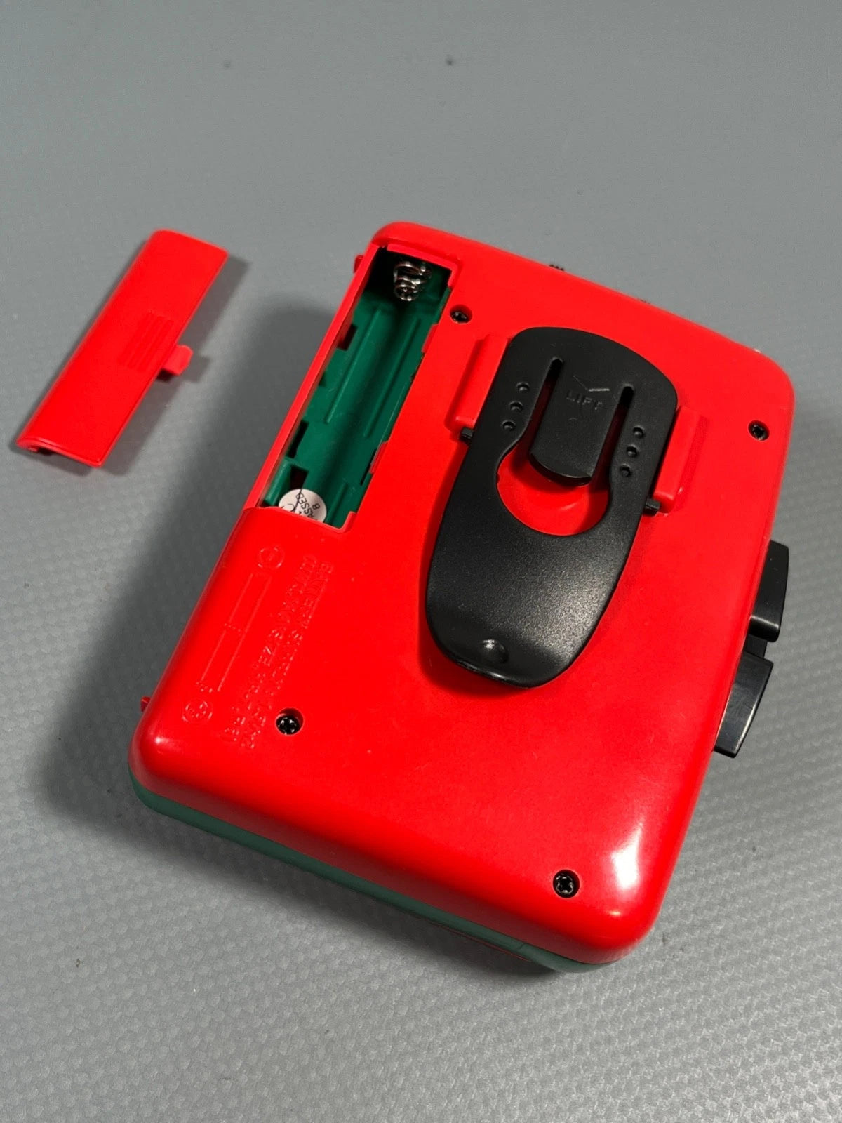 This unit has a Bass Boost switch and will work off 2 'AA' batteries or a 3V power supply (not included). Obviously thae battery contacts are spotless, as the unit is new.