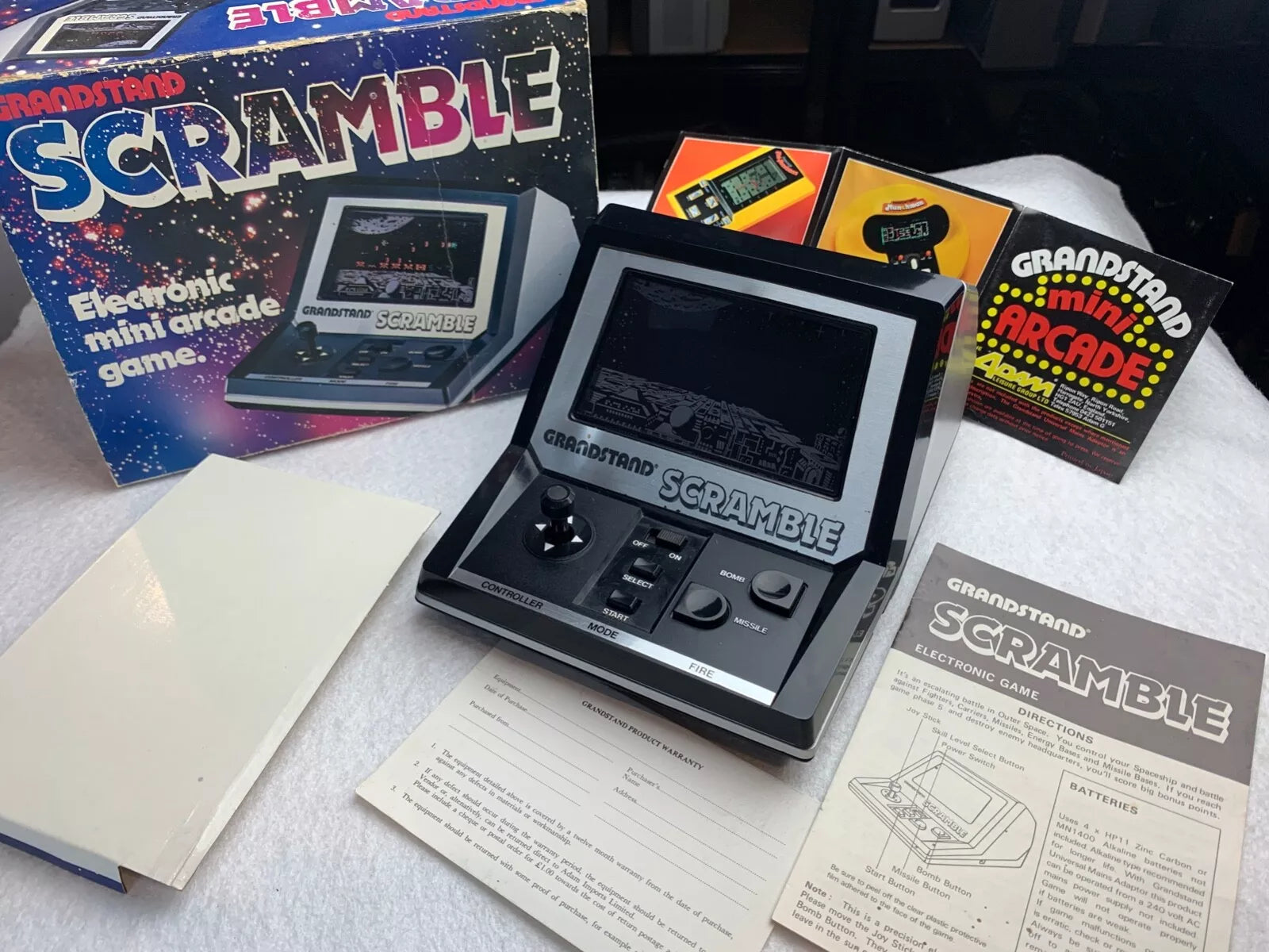 A cool retro game, in superb condition for age - please see the photos of the exact item for sale. The colour booklet is so new, it has to be held open - I only partially opened it just for the photos, so it is mint!