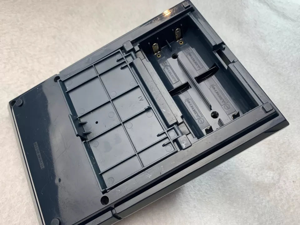 The game runs nicely off a 6V negative tip adaptor, or 4 ‘C’ batteries (not supplied). The battery terminals are very clean - hence running well from the batteries. The battery compartment is also very clean, with no previous leakage. The door hinges freely and locks in beautifully.