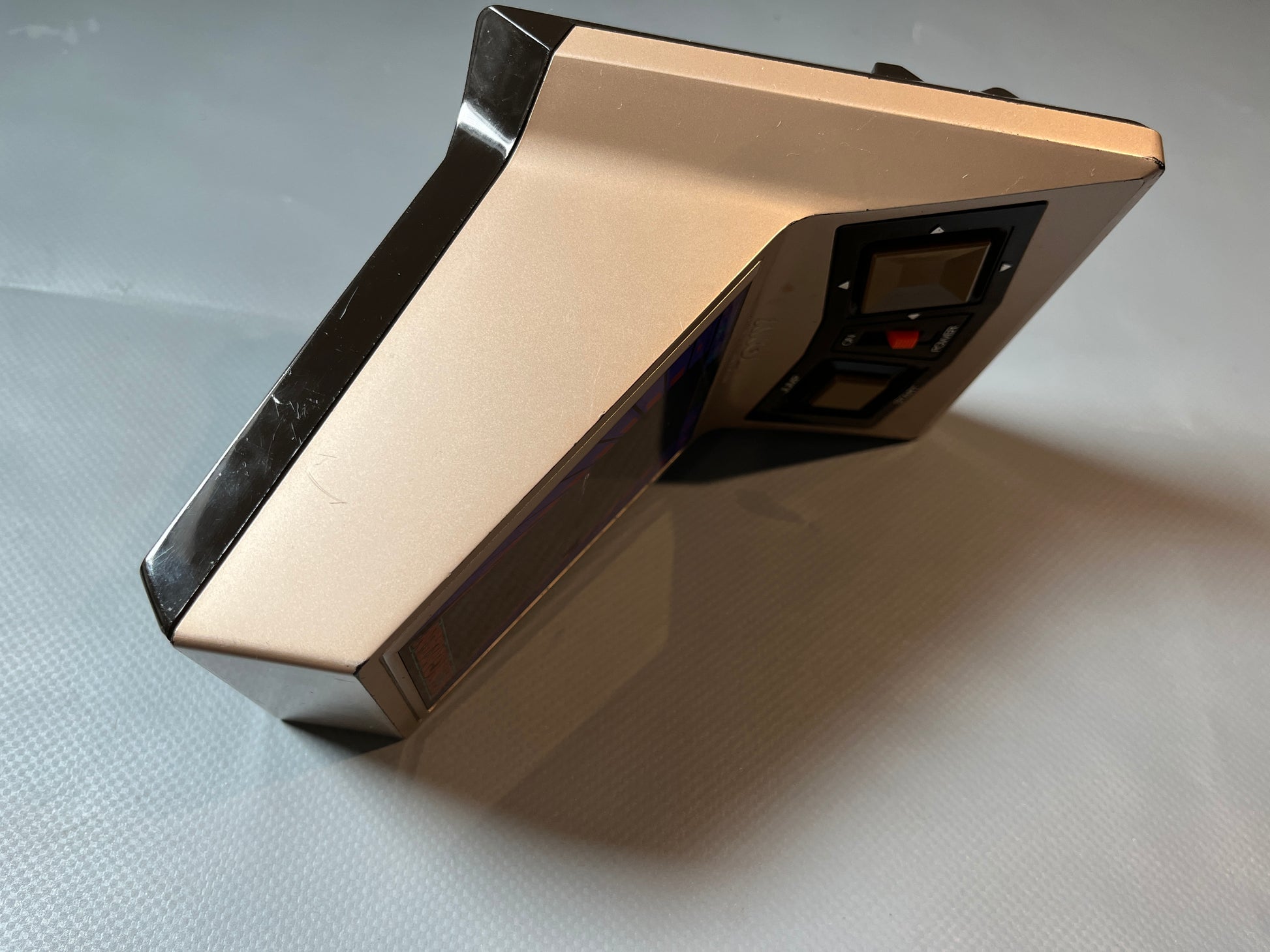 The unit is in very nice cosmetic condition overall for its age, with only minor playwear and small marks to the gold finish - and polishes up beautifully, with the printed screen graphics and rear battery caution sticker still looking great. Please see the photos for more detail, as they are of the actual unit in this auction. It is all polished up, serviced and ready to go as a display piece, talking point, or for retro-self indulgence!