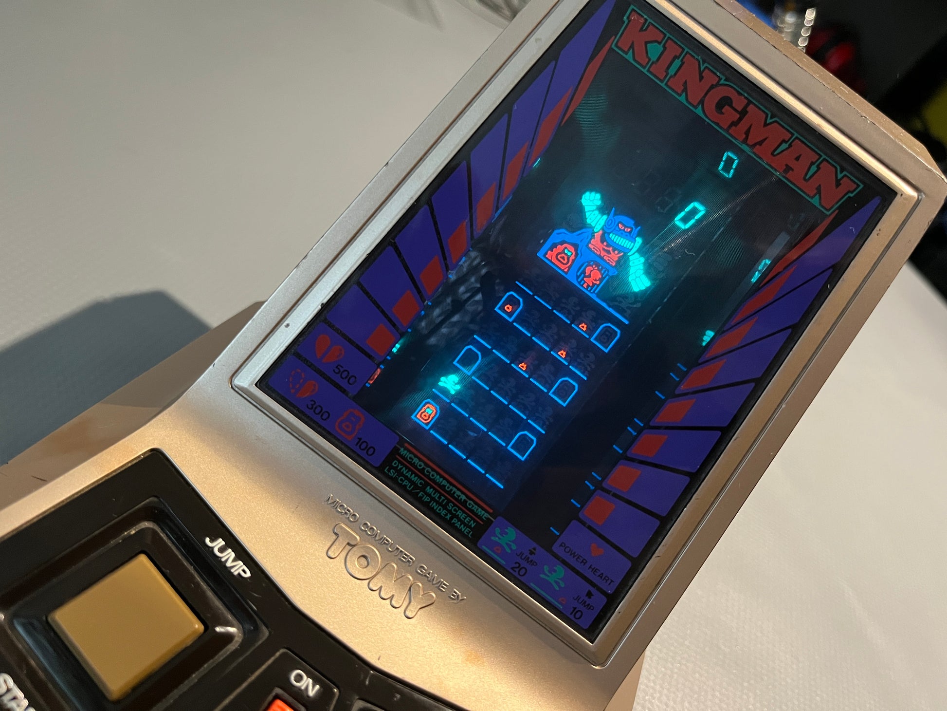 Here we have a super cool Kingman game from Tomy. It is in full working condition. All controls work nicely. The speaker is loud & clear, and the VFD display is bright.